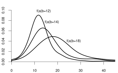 Since wage is a continuous variable, its conditional distribution given any specific value of another variable is usually also continuous. The conditional density of Y given Z=b is defined as the derivative of the conditional CDF: f_{Y|Z=b}(a) = f_{Y|Z}(a|b) = \frac{d}{d a} F_{Y|Z=b}(a).