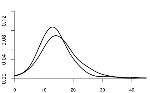 Suppose we want to estimate the experience density at a = 21 and consider the histogram density estimate with h=5. It is based on the frequency of observations in the interval [20, 25) which is a skewed window about a = 21.
