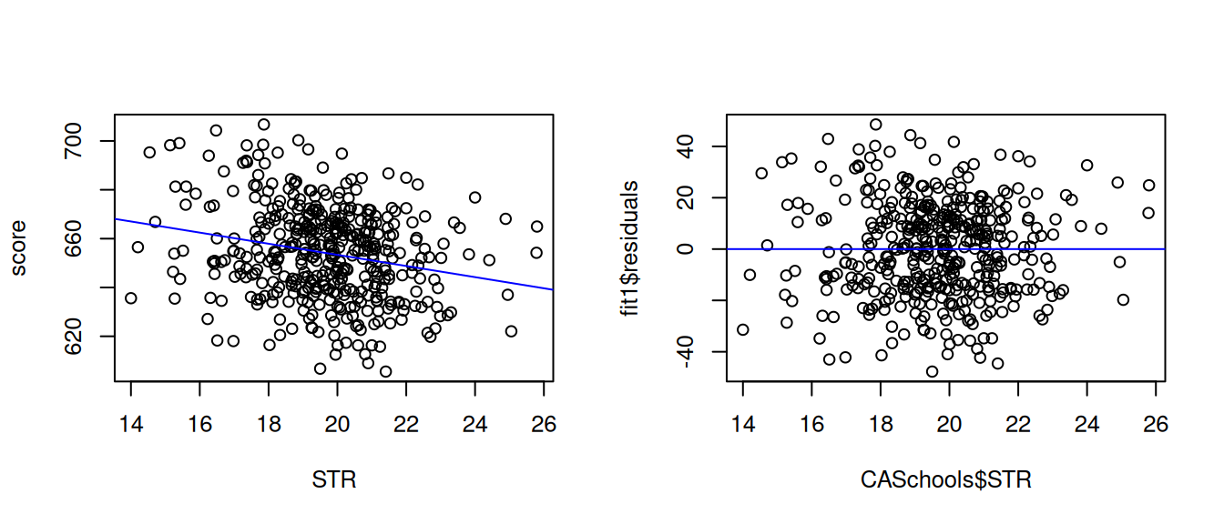 Let’s examine the linear relationship between average test scores and the student-teacher ratio: